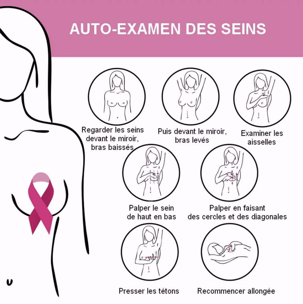 Le dépistage est primordial et simple : il passe avant tout par l’autopalpation régulière des seins : vous êtes la plus à même de connaitre vos seins et de savoir si quelque chose y était ou pas ! Cela prend 5 minutes et peut vous changer la vie.